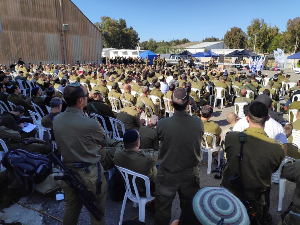 (בתמונה: מאות מחיילי גדוד המילואים בשיחה מהמאו"ג)